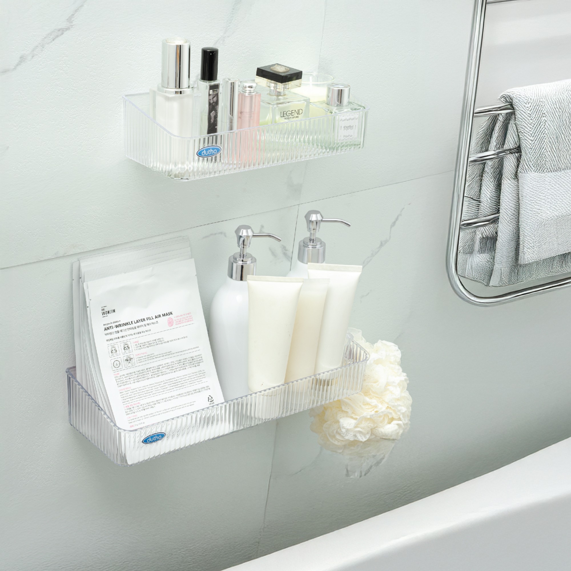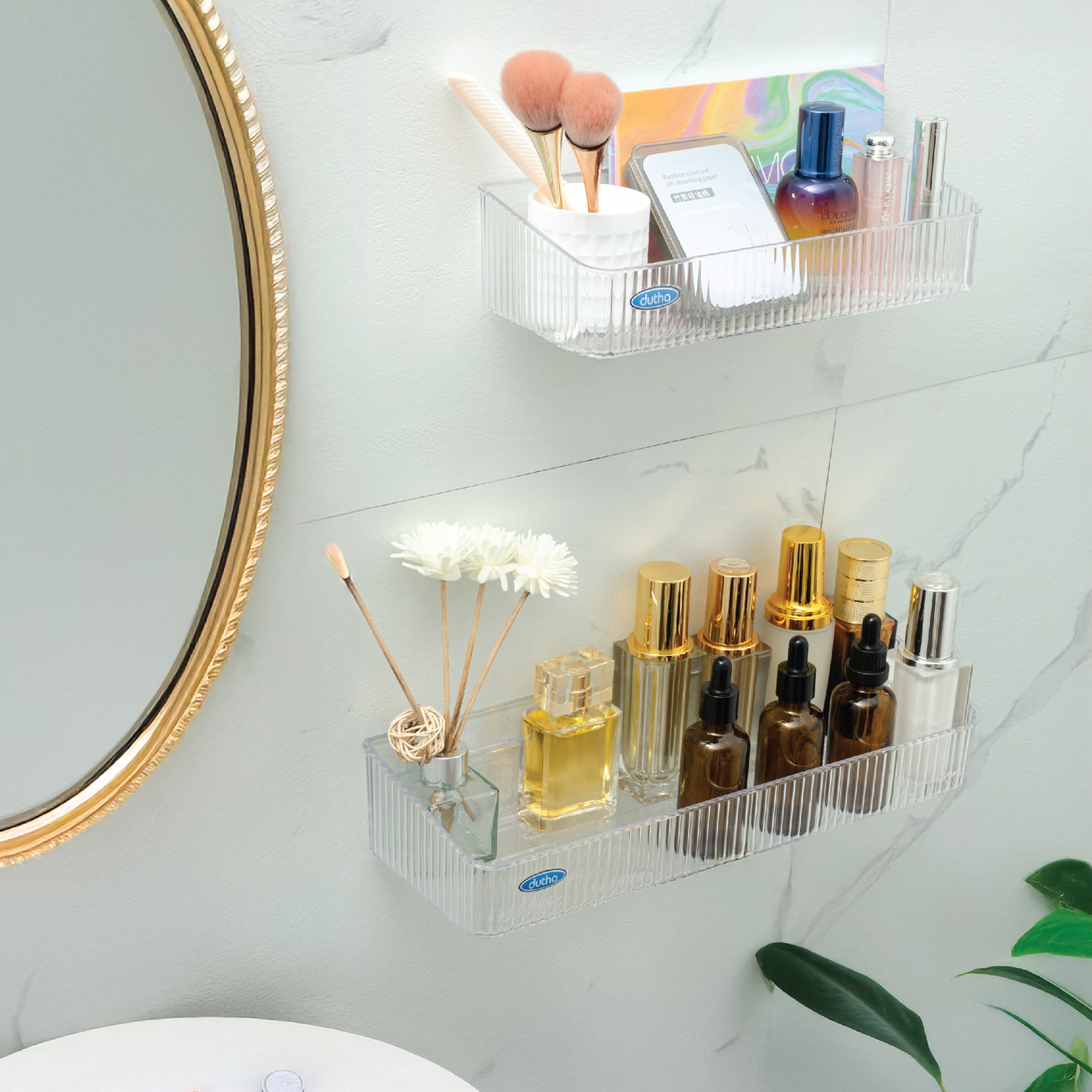 Thiết kế dài 25cm và dài 35cm với mặt trước vân sọc đứng nổi bật, khay Dutha giúp tối ưu không gian lưu trữ cho nhà tắm, nhà bếp hay phòng giặt. Đựng thoải mái sữa tắm, dầu gội, nước rửa chén hay hũ gia vị lớn.