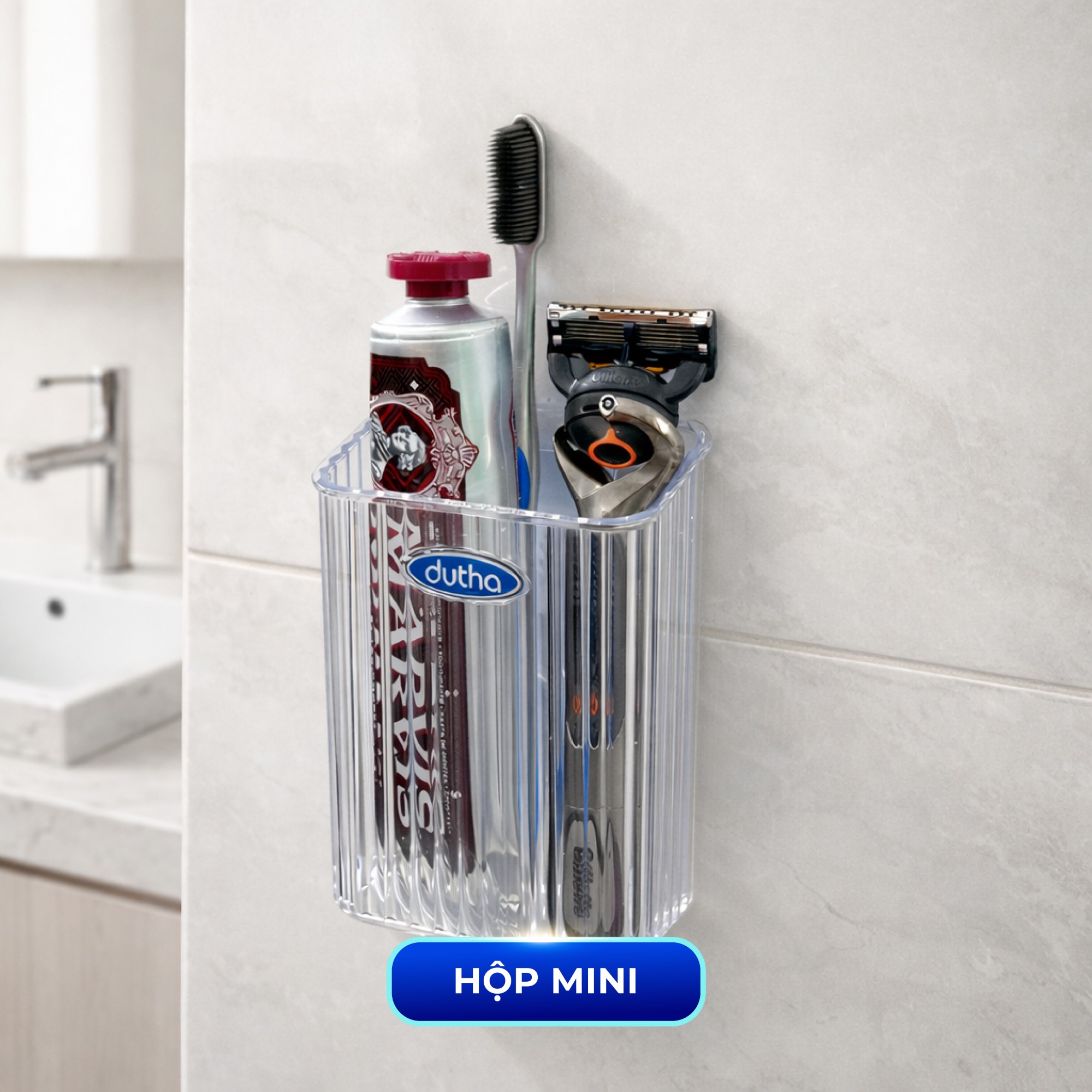 • Hộp dán đa năng size S: Đựng bàn chải, kem đánh răng, cọ makeup,...