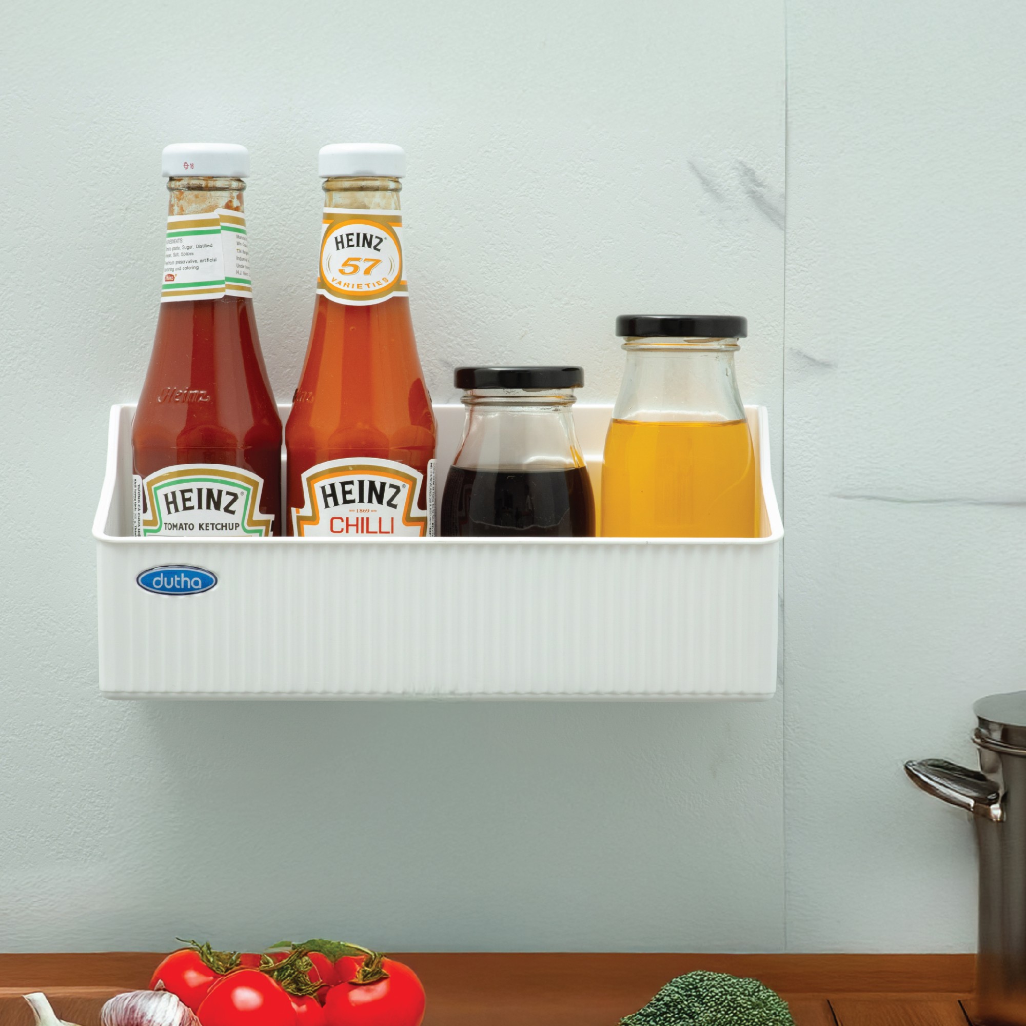 Chỉ cần dán nhẹ – không khoan, không bắt vít, kệ đã cố định chắc chắn trên tường nhờ miếng dán keo  siêu dính cao cấp. Giải pháp hoàn hảo giúp giữ gọn lọ mỹ phẩm, gia vị, chai dầu gội hay vật dụng nhỏ… mà không làm tổn hại bề mặt tường.