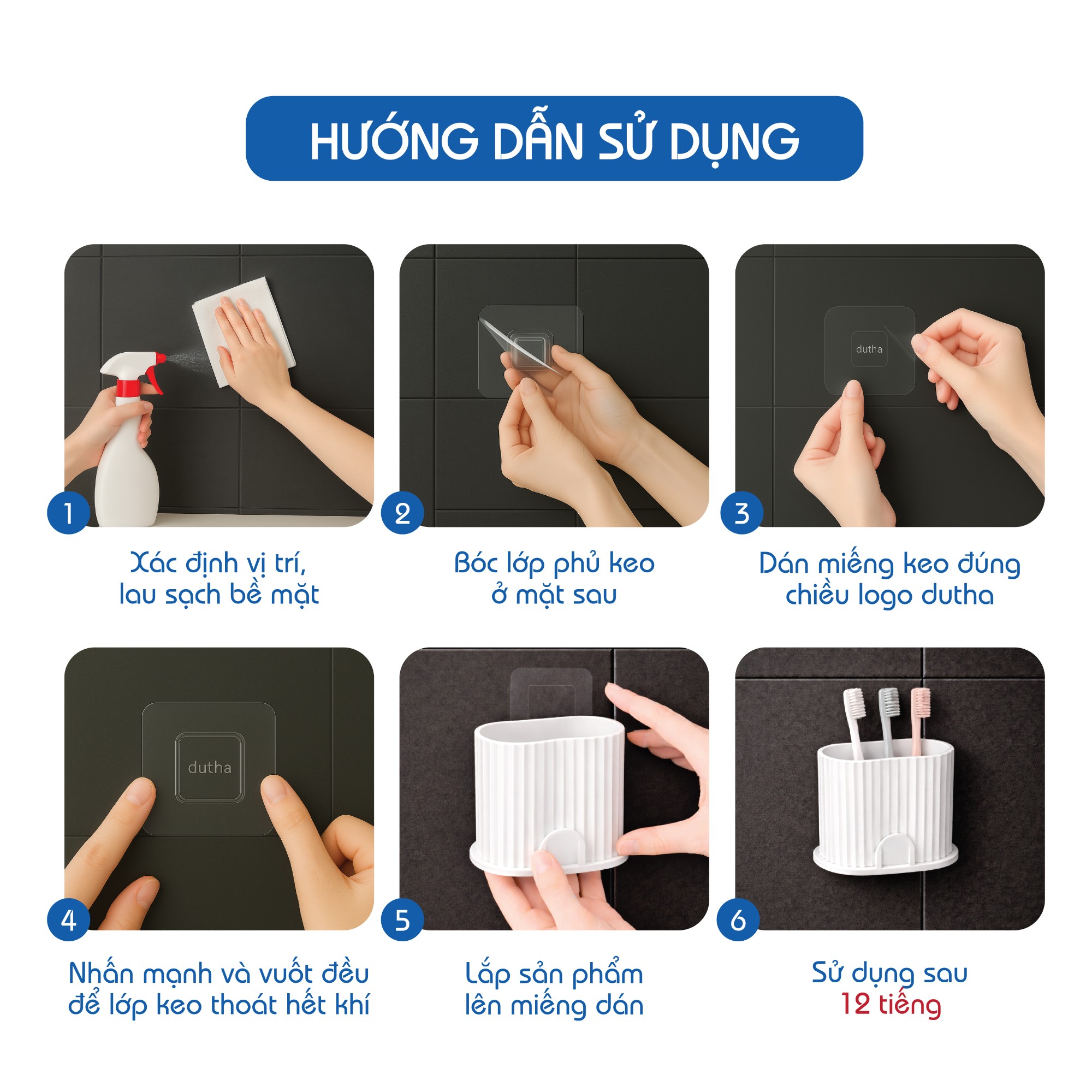 (Note: Wait exactly 12 hours for the adhesive to bond firmly.)