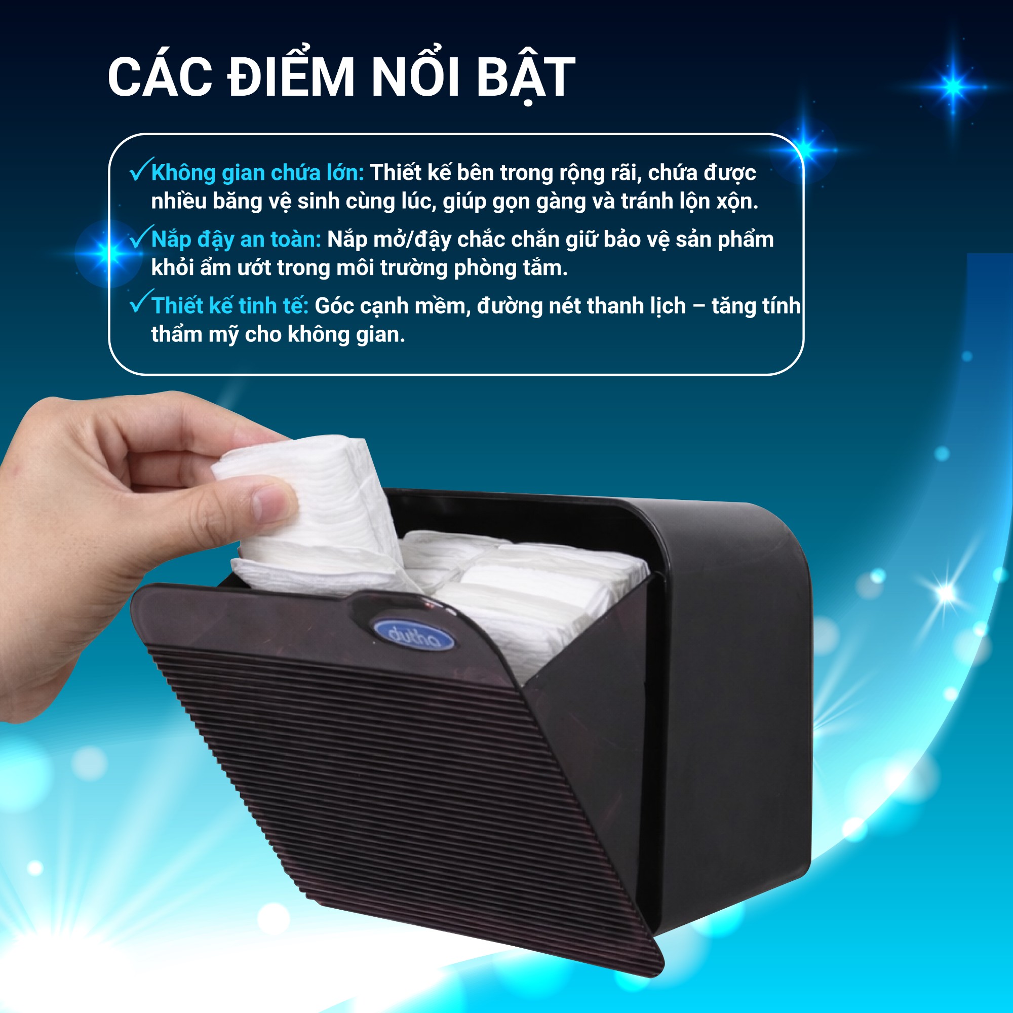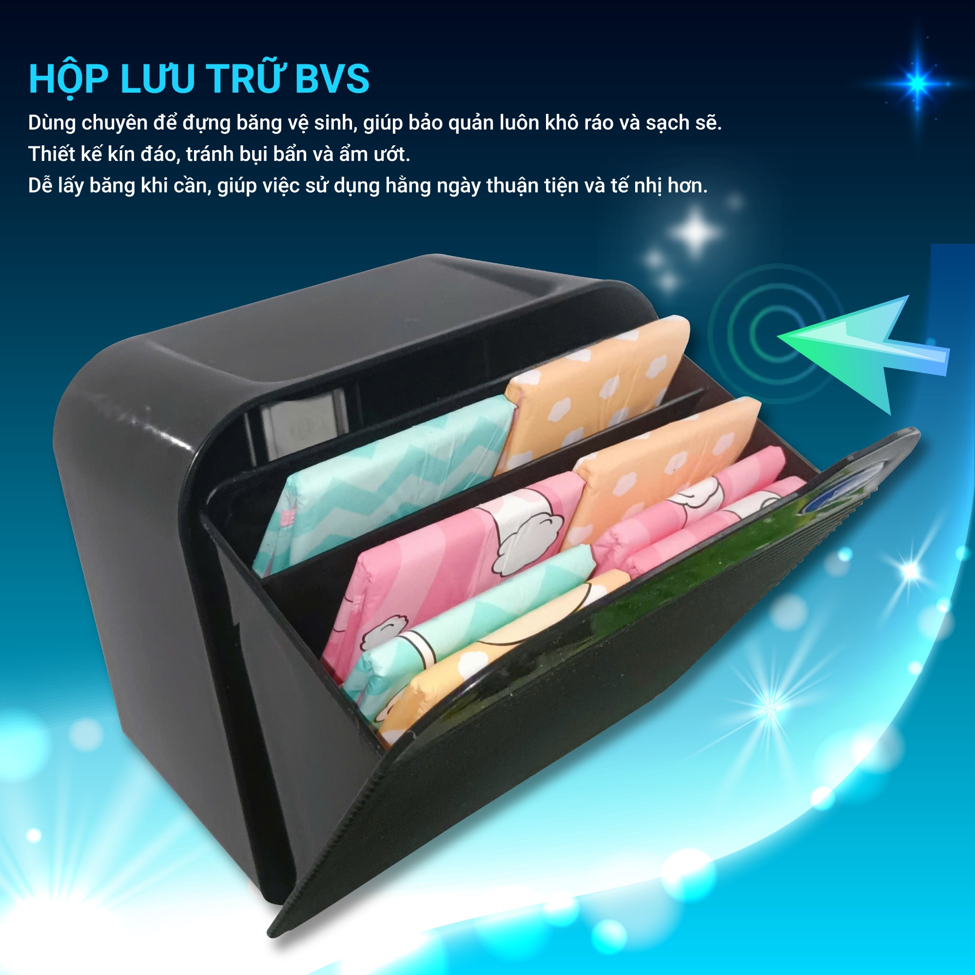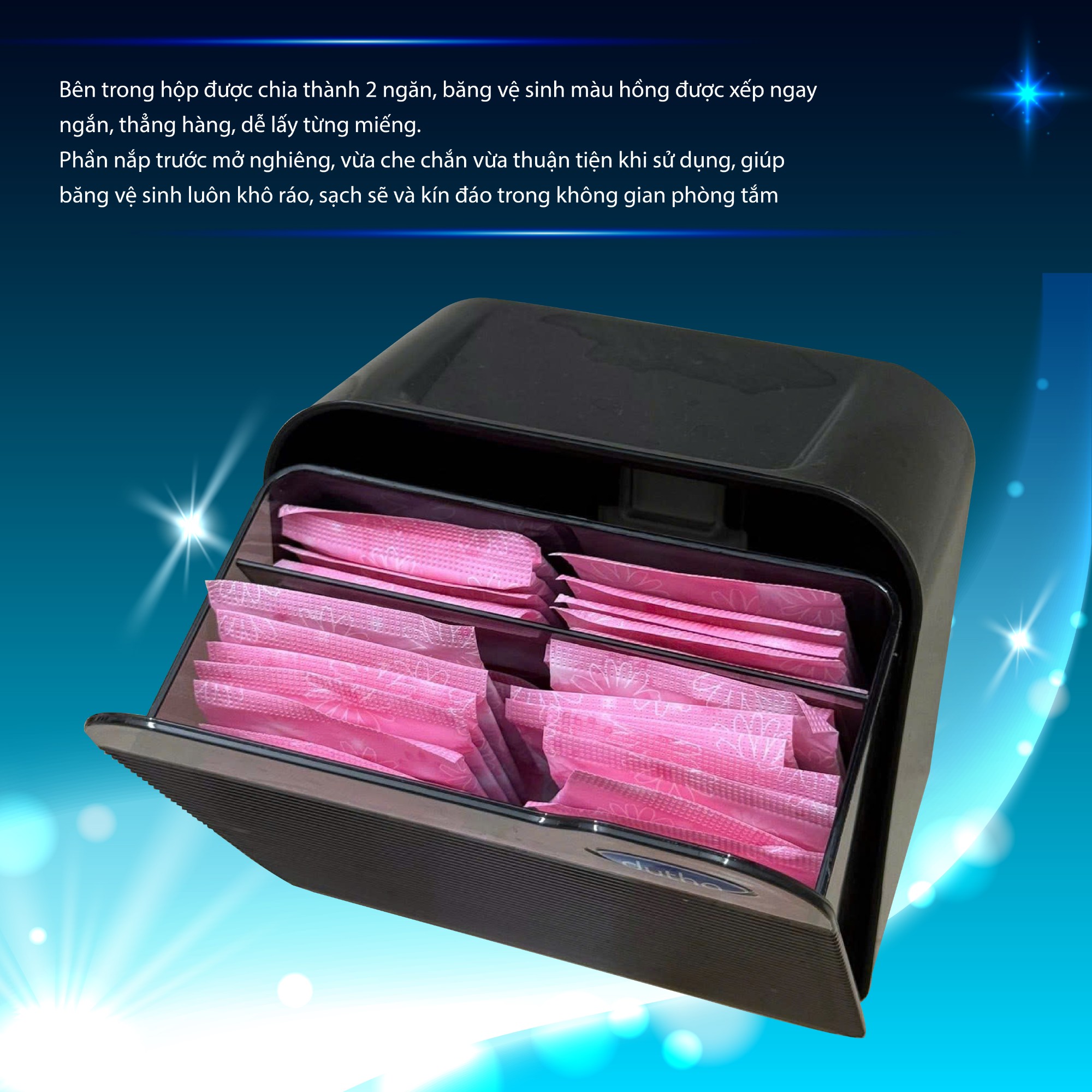 A sanitary napkin storage box is a specialized product used to store sanitary napkins, including daytime, nighttime, and daily pads, helping to keep the bathroom space tidy, clean, and discreet.
