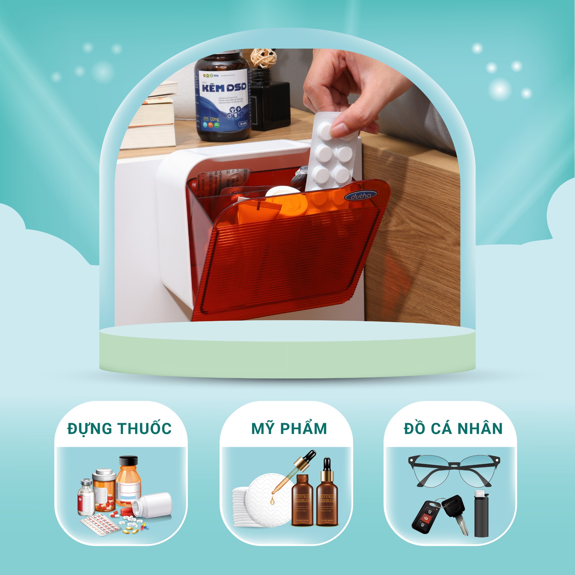 Trong sinh hoạt gia đình, những vật dụng như thuốc, băng vệ sinh, bông tẩy trang, serum, son môi, chìa khóa… đều là đồ cần dùng thường xuyên nhưng không nên để lộ. Nếu đặt rời rạc trên kệ hay mặt bàn sẽ dễ rối – mất thẩm mỹ – khó kiểm soát.