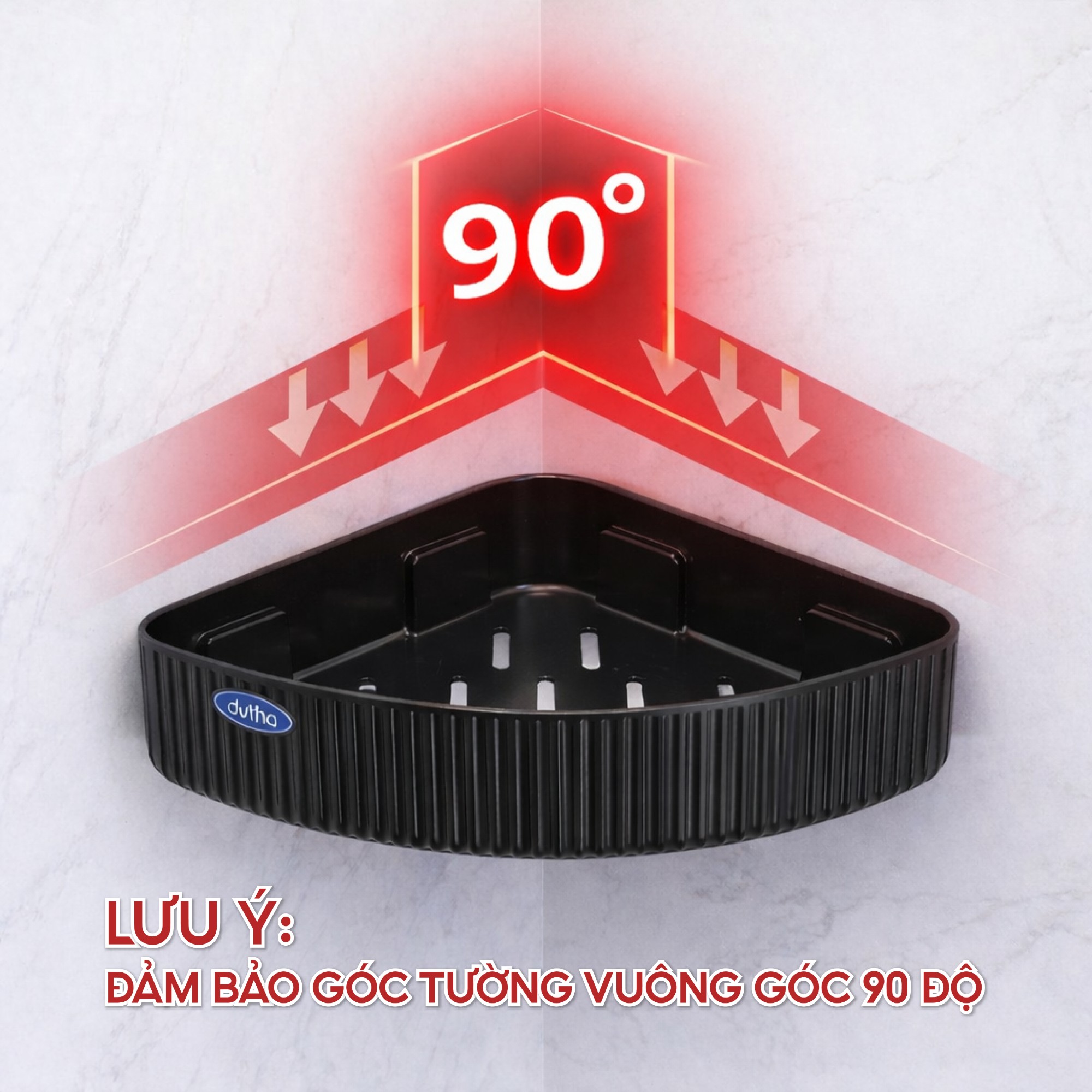 Kệ được thiết kế chuyên cho góc 90°, giúp biến khu vực thường bị bỏ trống thành nơi để đồ tiện lợi.