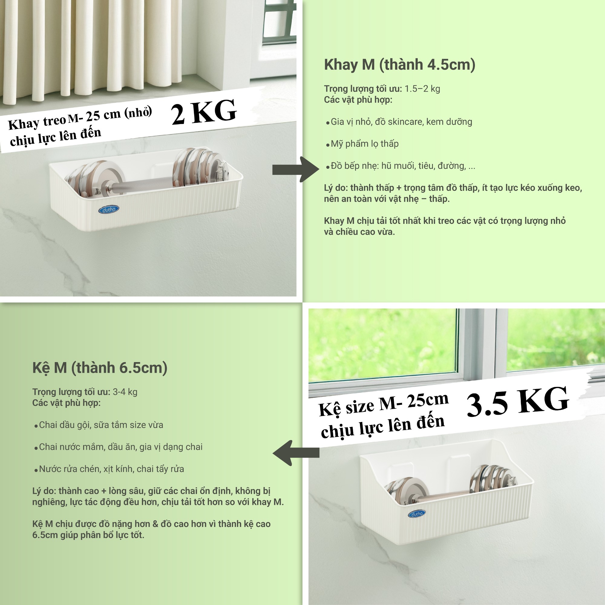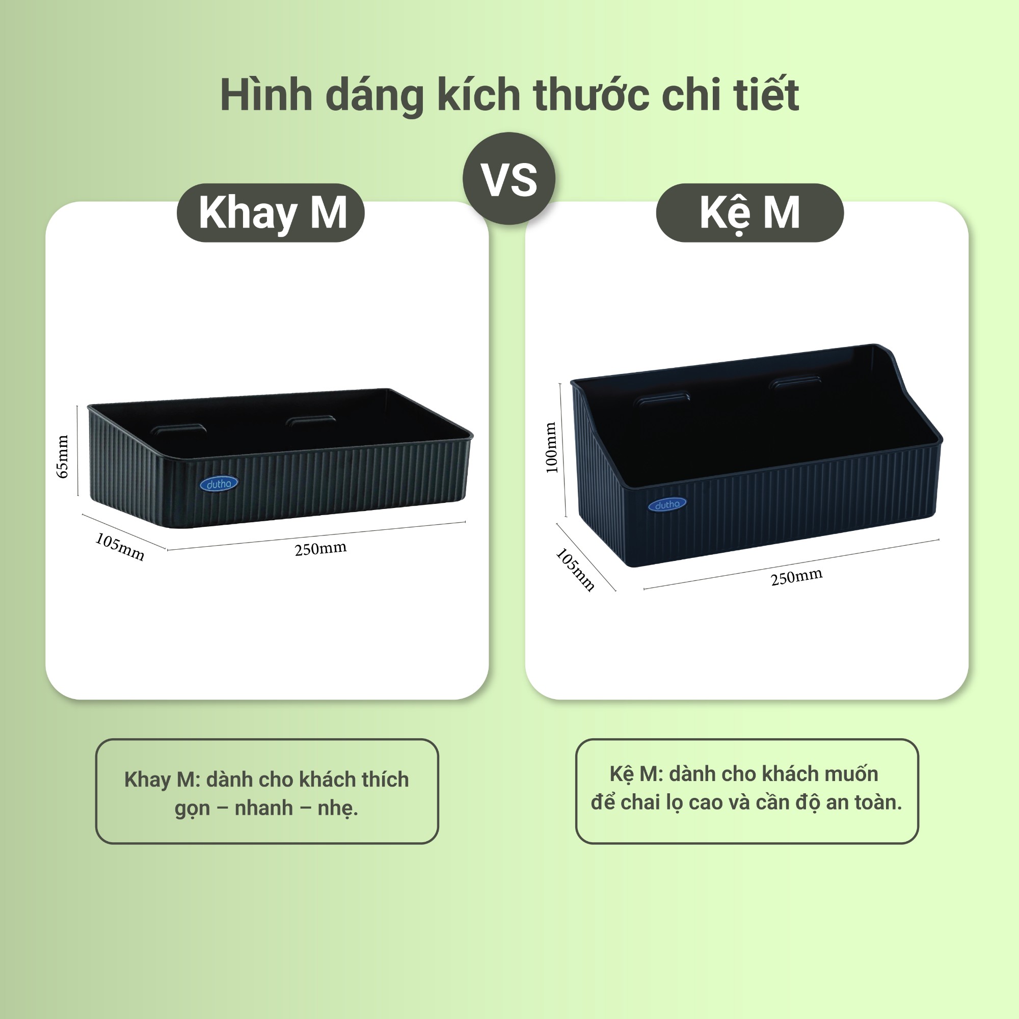 ⇒ Xem video để biết thêm sự khác nhau giữa Khay M và Kệ M dutha:
