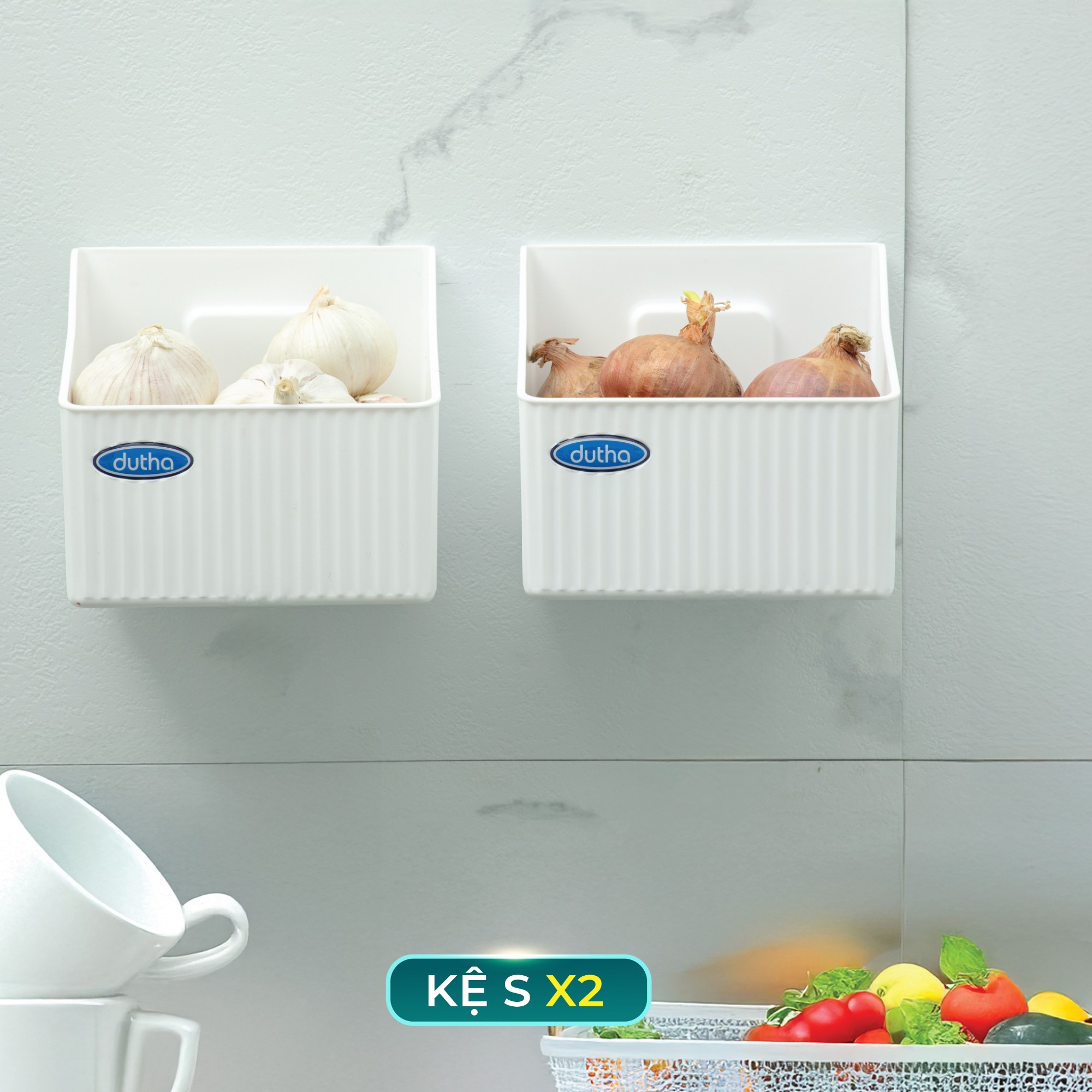 2 kệ S: Chia đồ nhỏ như lọ tiêu, hũ nêm, dụng cụ bếp nhẹ – linh hoạt bố trí.