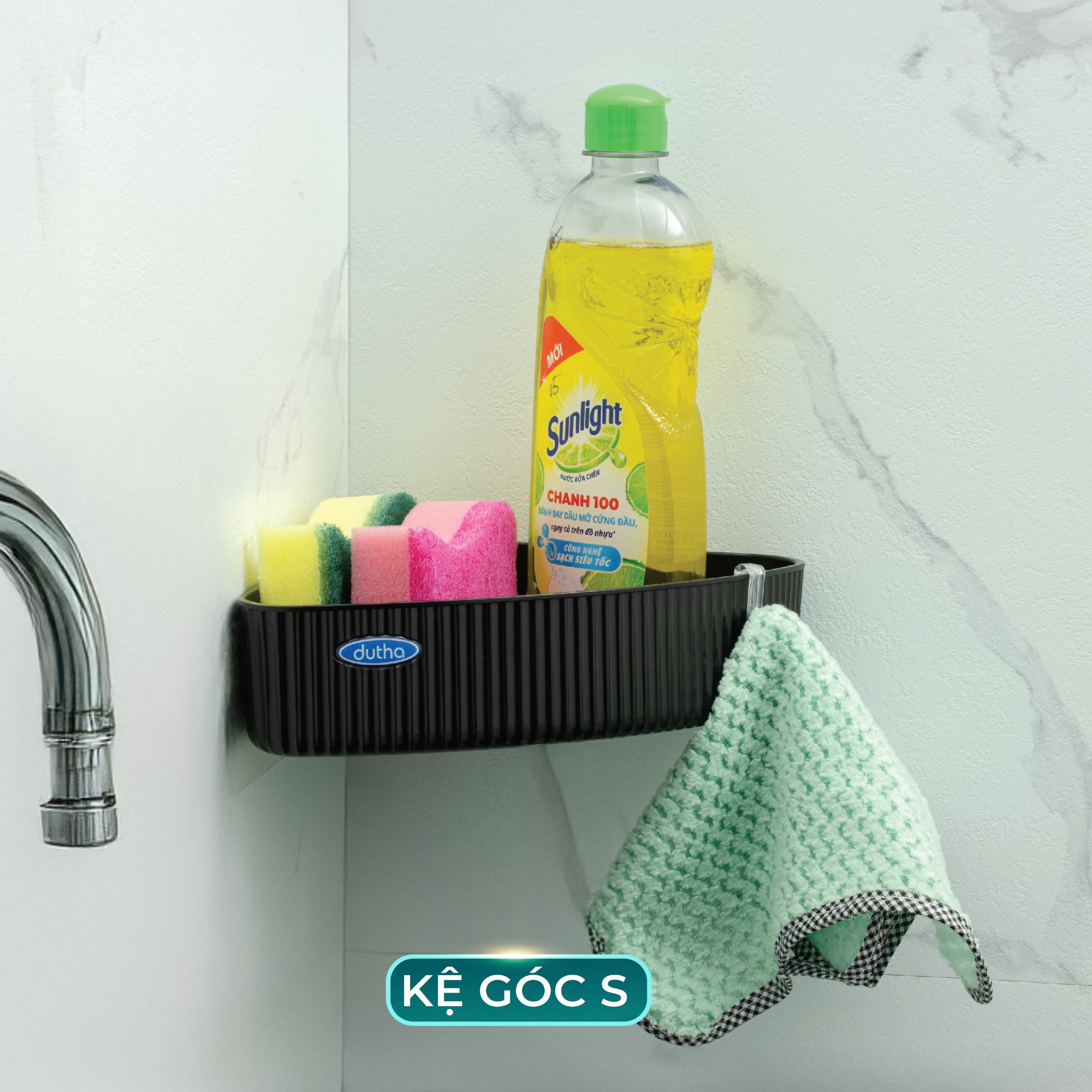 Kệ góc S: Tận dụng góc tường bếp, để hũ gia vị hoặc vật dụng nhẹ, gọn gàng.