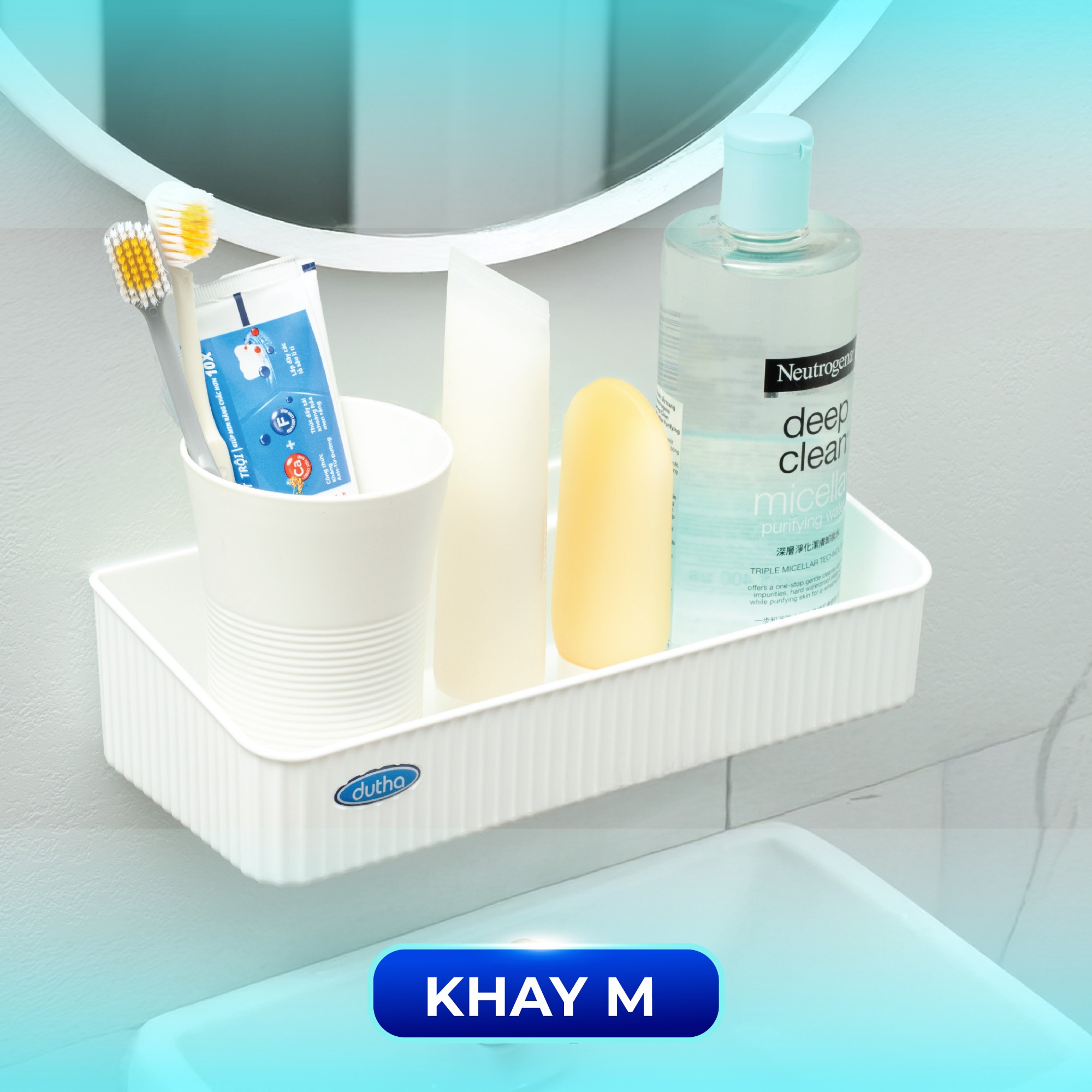 Khay M: Vừa vặn cho sữa tắm, dầu gội, chai lọ dùng hằng ngày.