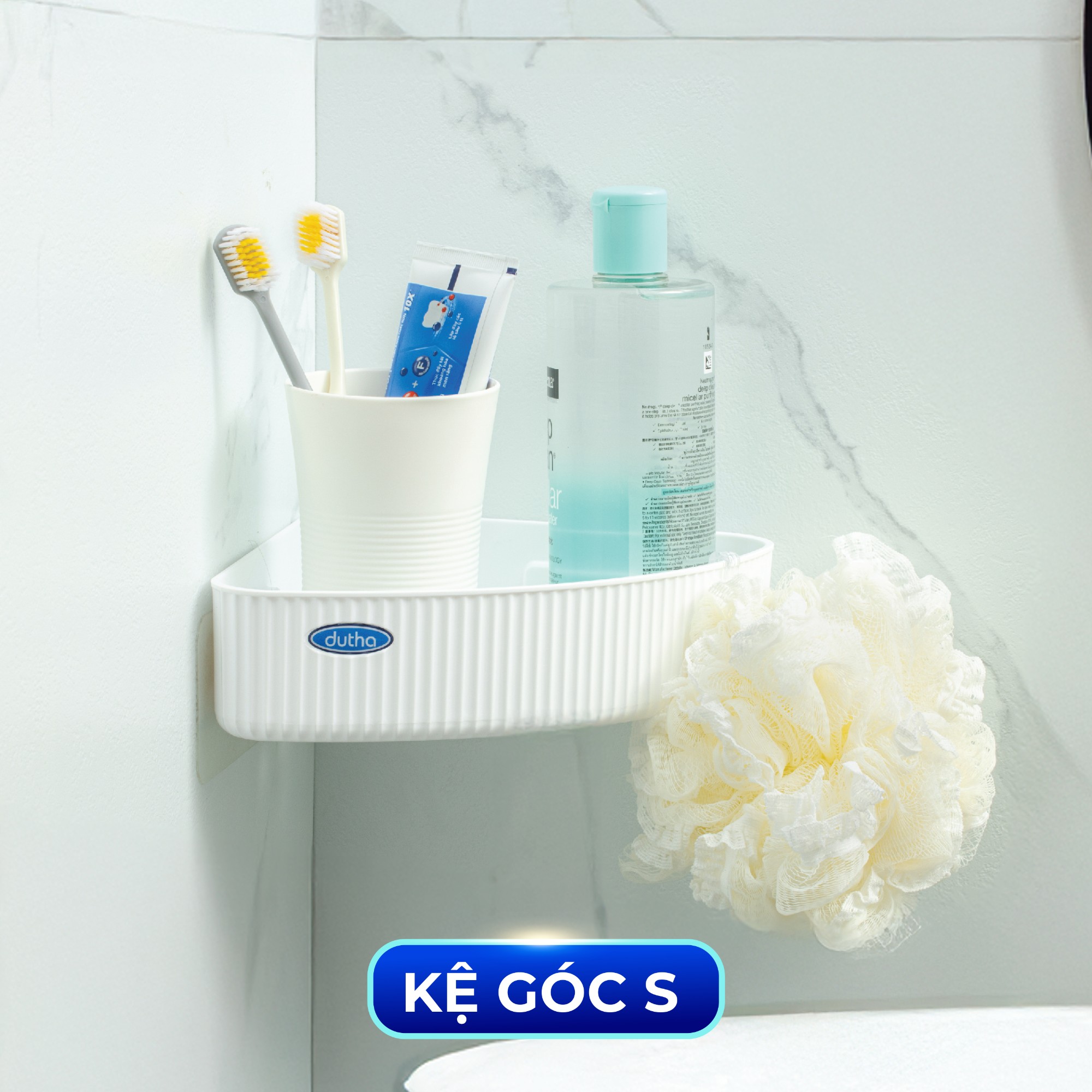 Kệ góc S: Tận dụng góc tường nhỏ, gọn cho xà phòng, đồ cá nhân.