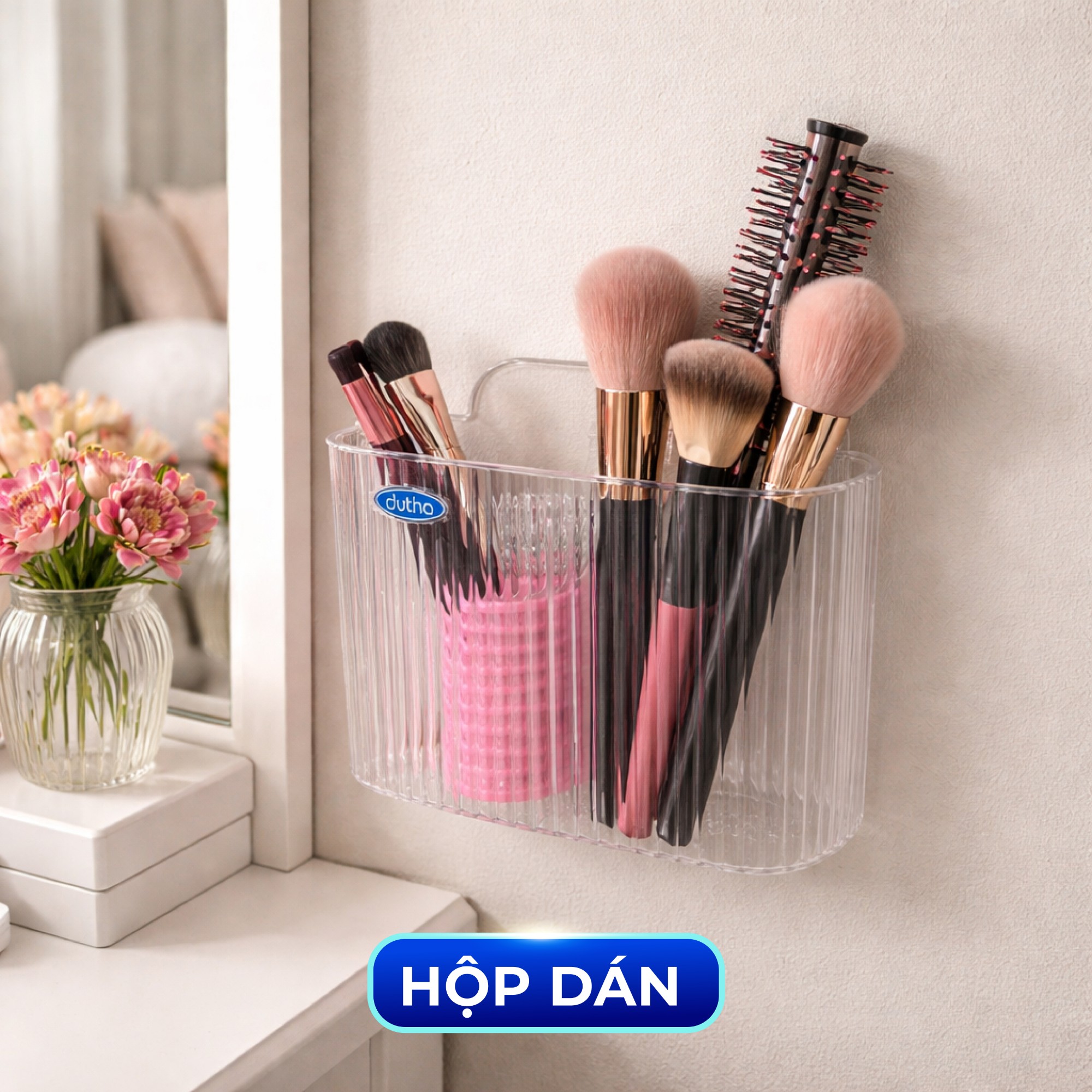 Hộp dán siêu dính: Đựng bàn chải, kem đánh răng, mỹ phẩm nhỏ – chống ẩm tốt.