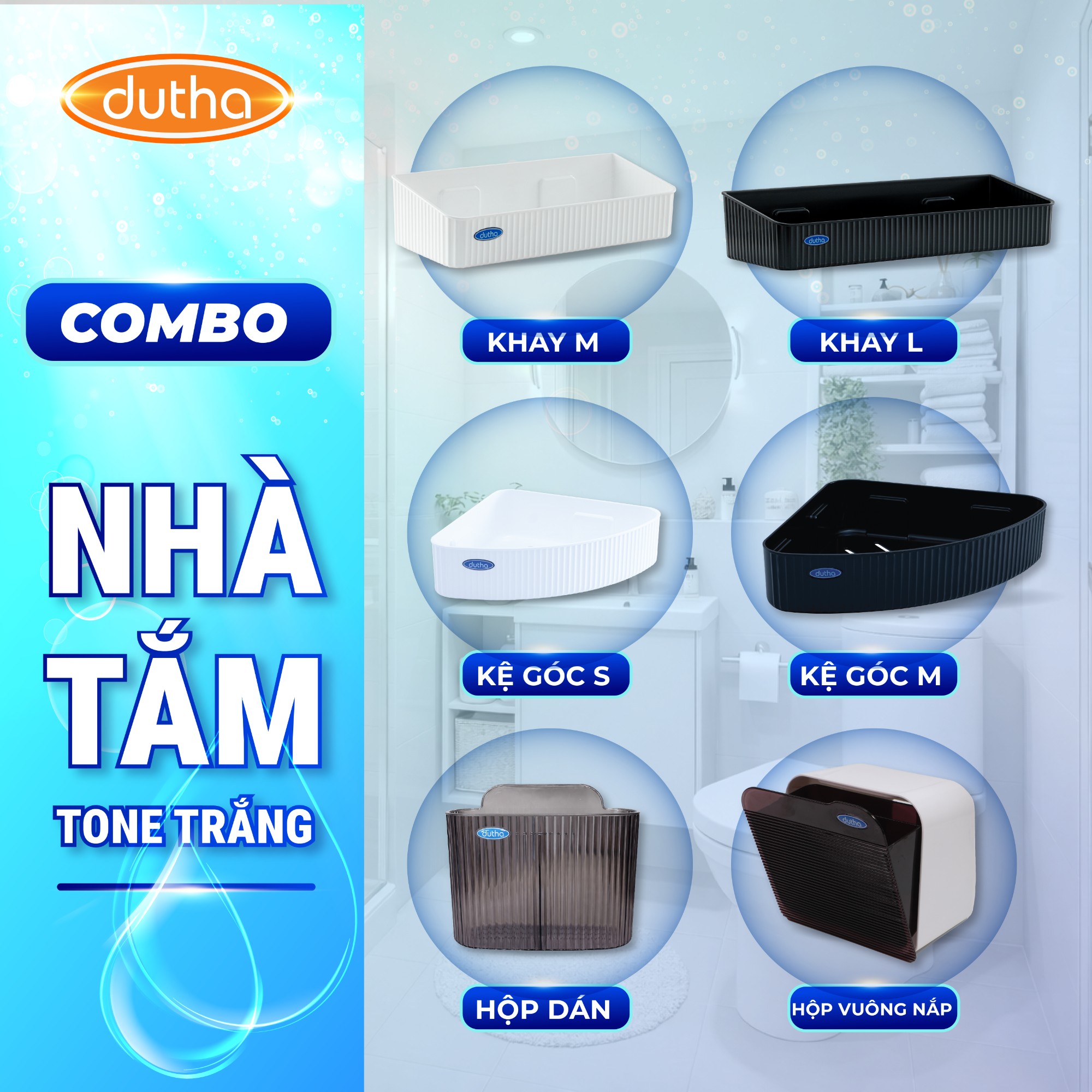 Combo Nhà Tắm Tone Trắng – Giải Pháp Gọn Gàng, Sạch Sẽ & Không Khoan