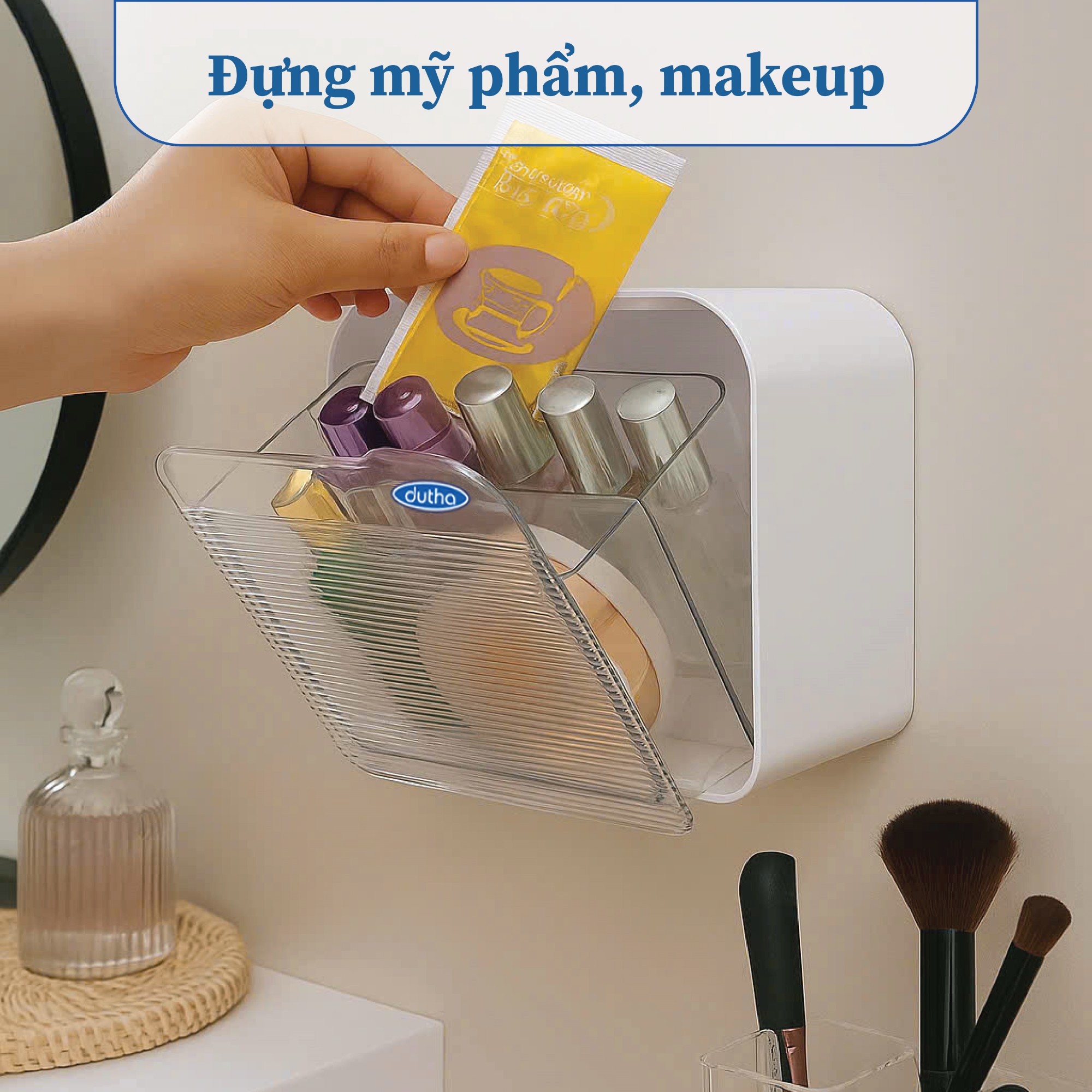 Đựng mỹ phẩm, skincare, dụng cụ trang điểm, tẩy trang.