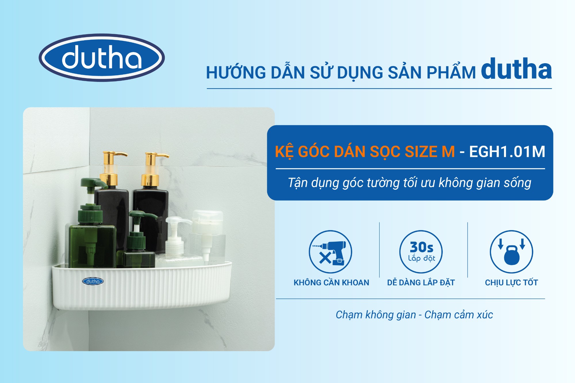 Bước 2: Gắn keo vào kệ và bóc lớp phủ keo ở mặt sau theo chiều logo dutha