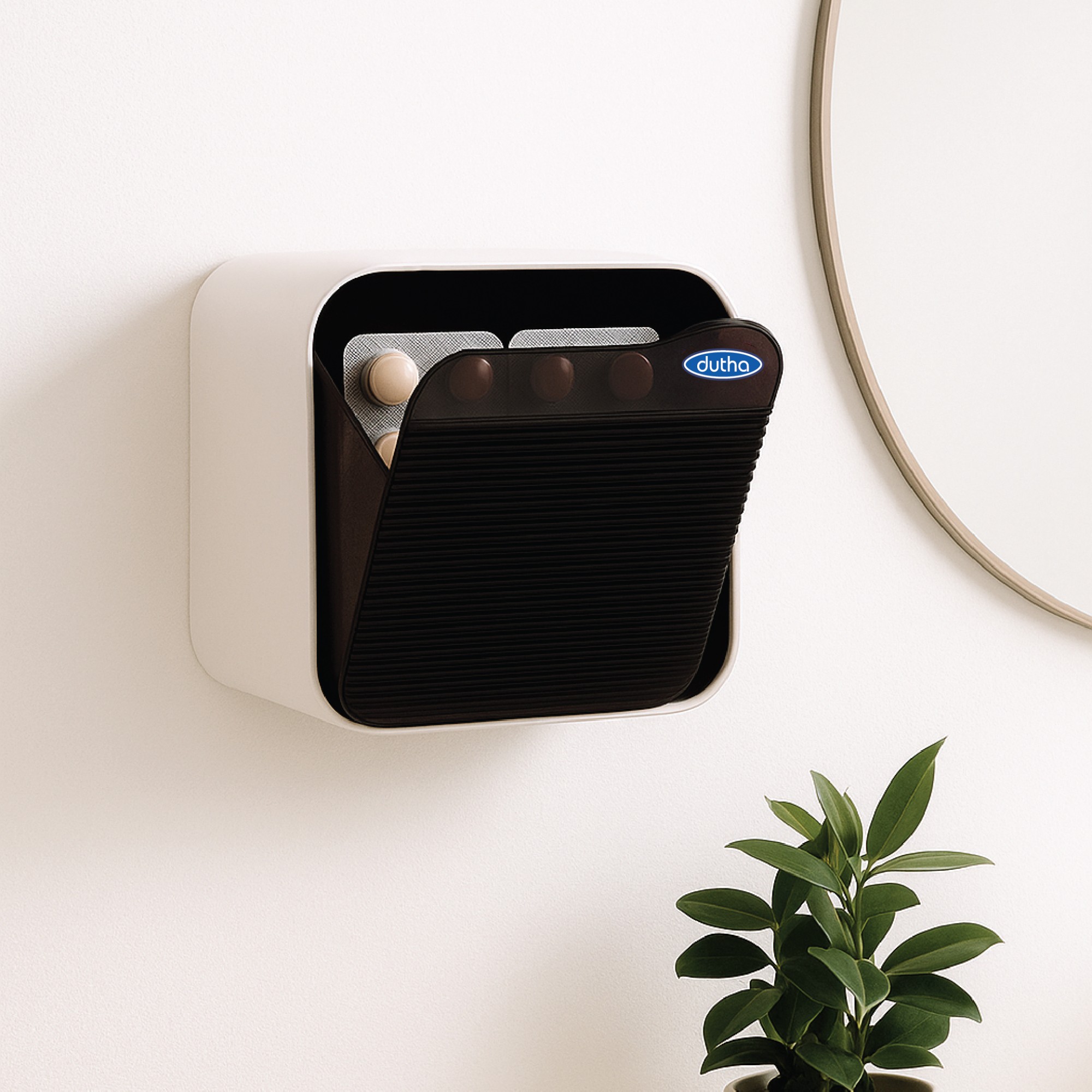 Những vỉ thuốc lẻ, uống dở, thay vì để lung tung trên bàn hay trong ngăn kéo, giờ chỉ cần bỏ gọn vào hộp chia thuốc Dutha – treo cố định lên tường, dễ thấy, dễ nhớ.
