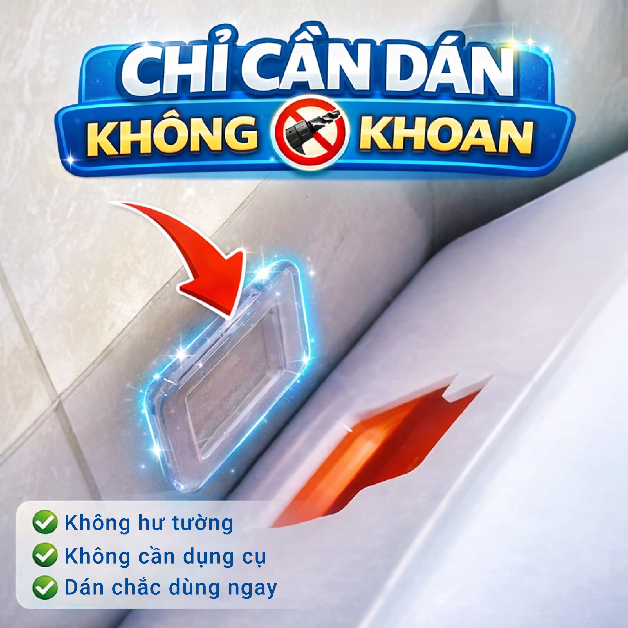 Hộp được thiết kế dán treo tường bằng keo siêu dính, không cần khoan bắt ốc, phù hợp với mọi bề mặt: tường gạch men, gỗ, sơn nước hay kính.