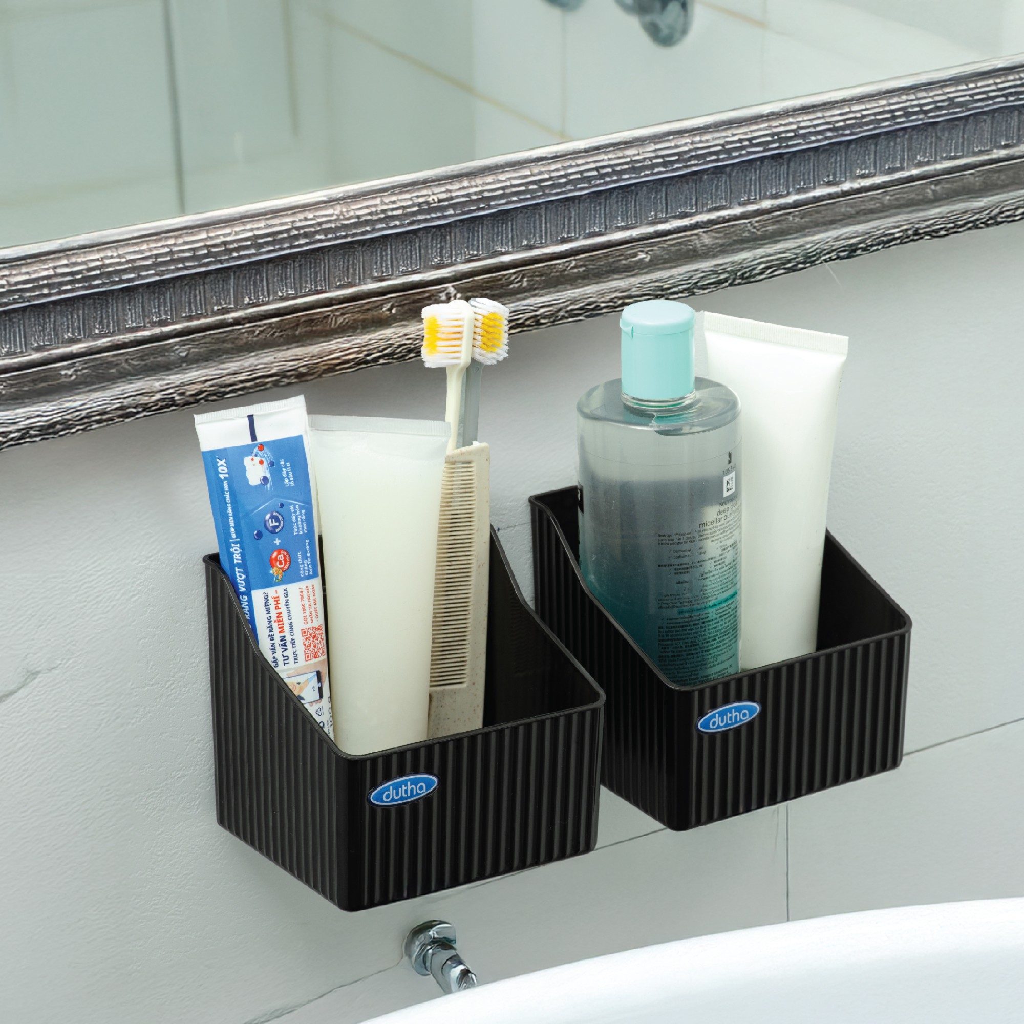Kệ để đồ dán tường chịu lực được thiết kế thích hợp để đựng các vật dụng nhà tắm, phòng bếp, đồ dùng học tập…