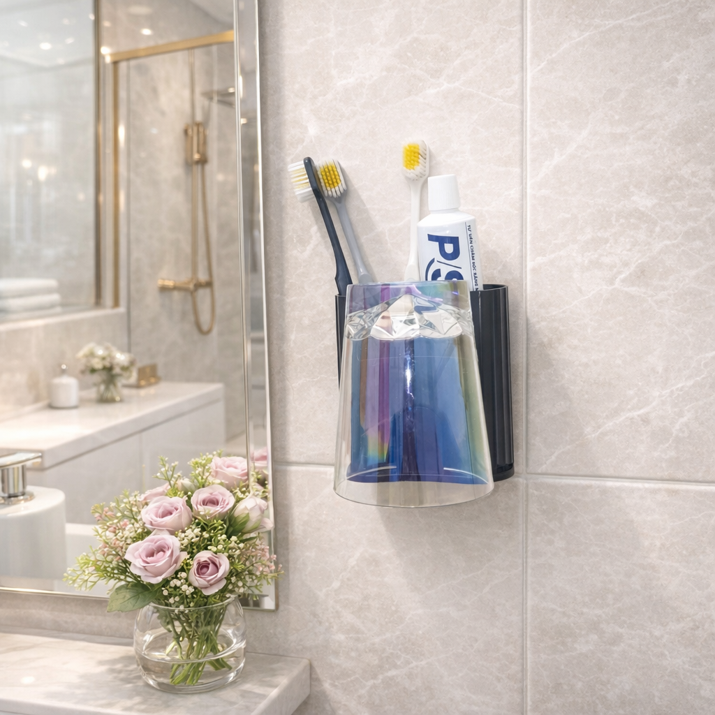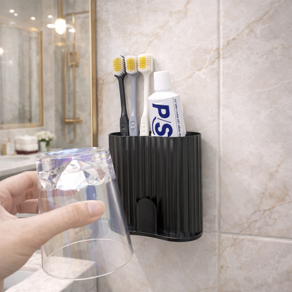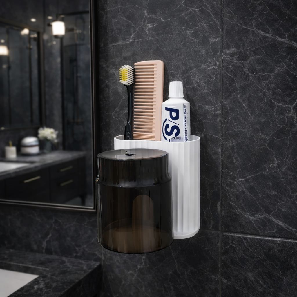 Với thiết kế dạng ống đứng nhỏ gọn, kệ giúp giữ các vật dụng theo chiều dọc, tiết kiệm diện tích và dễ lấy khi sử dụng. Đây là giải pháp đơn giản nhưng hiệu quả giúp không gian phòng tắm hoặc bàn trang điểm luôn ngăn nắp.